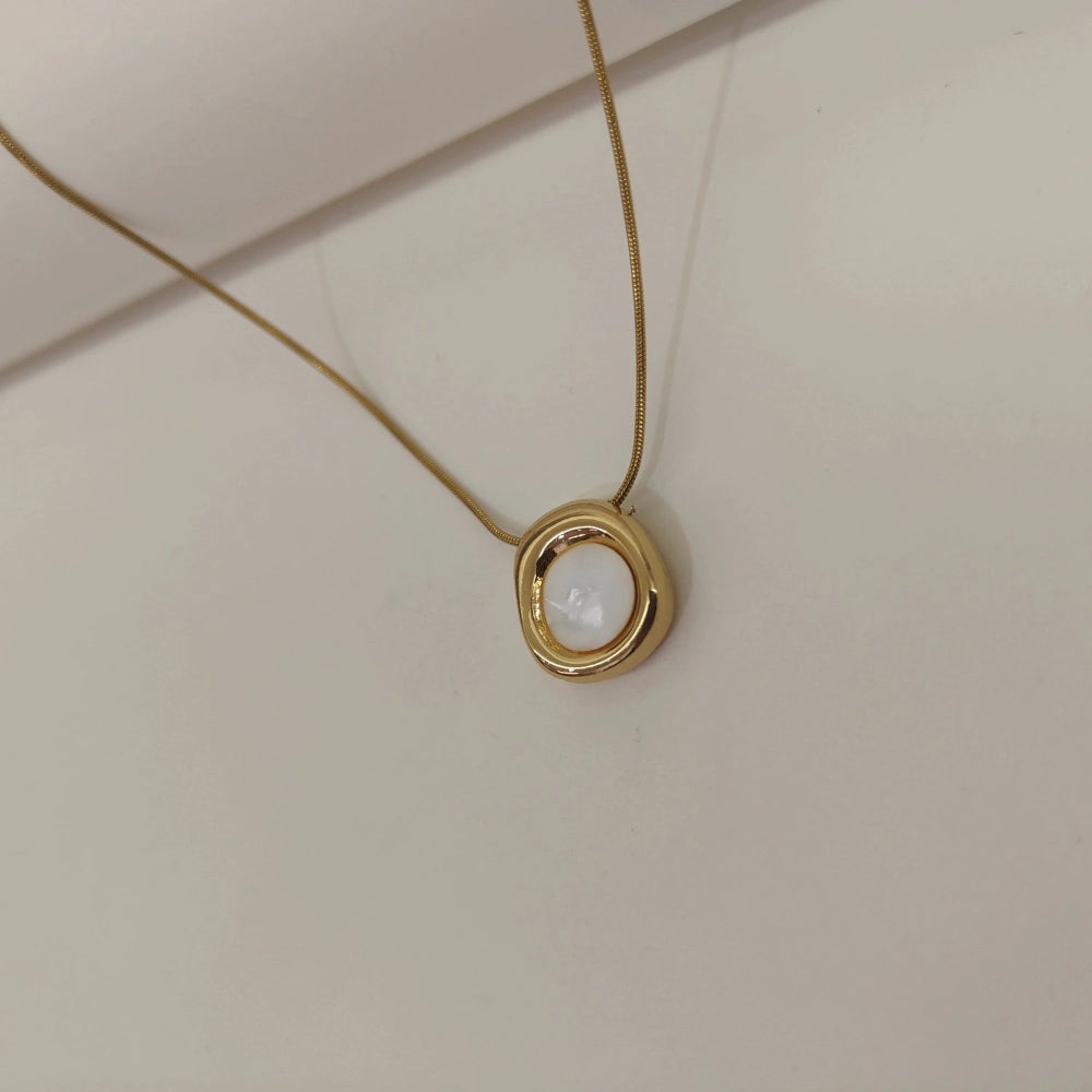 This necklace features a smooth oval white enamel centerpiece framed in a polished gold-toned setting. Paired with a sleek gold-toned chain, it adds effortless elegance to everyday and occasion looks.